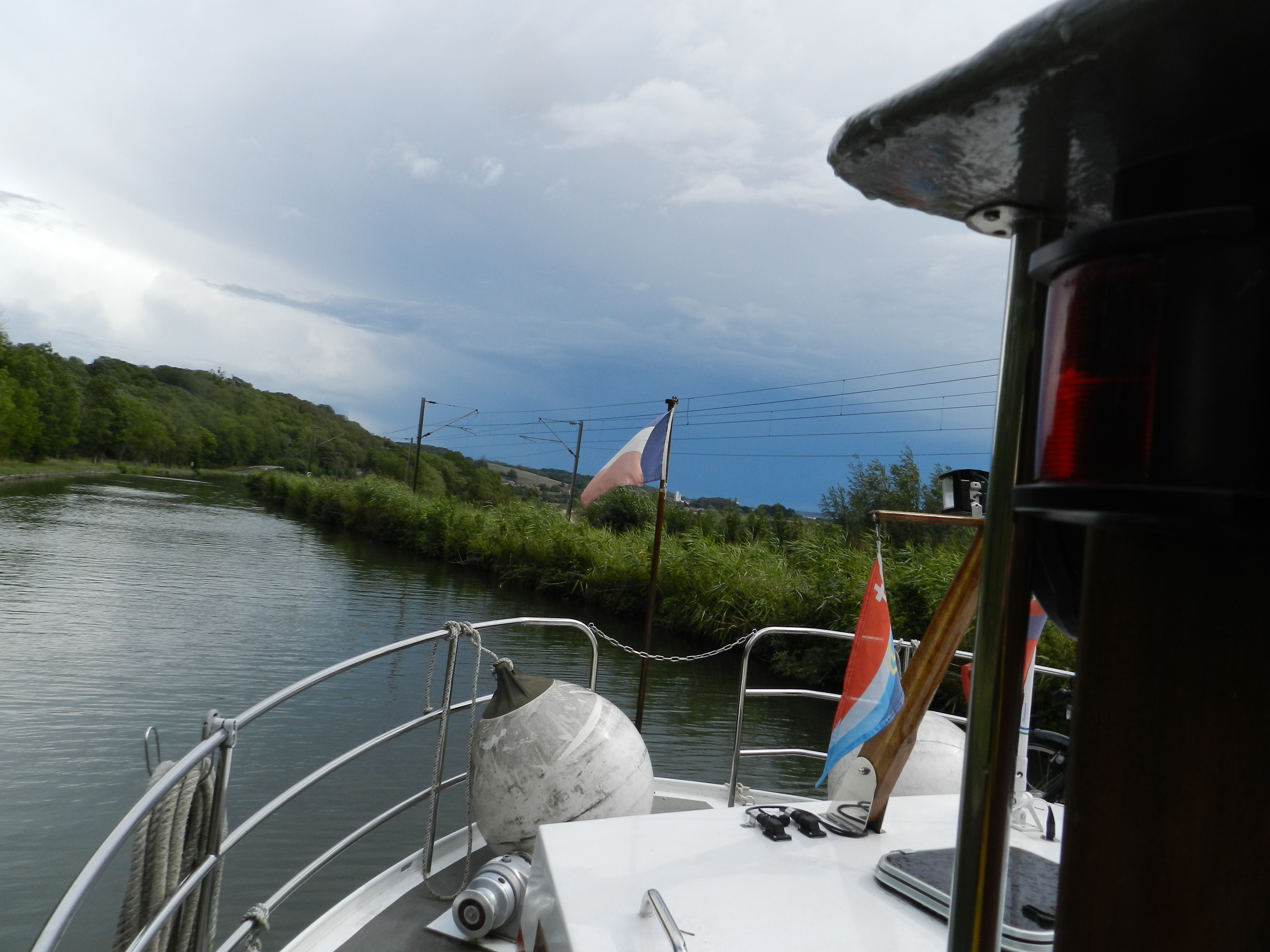 Mittagshalt in Laneuveville, dann weiter bei Sonne und Regen, Blitz und Donner, Flaute und Sturmwind – kein Wetter wird ausgelassen.
