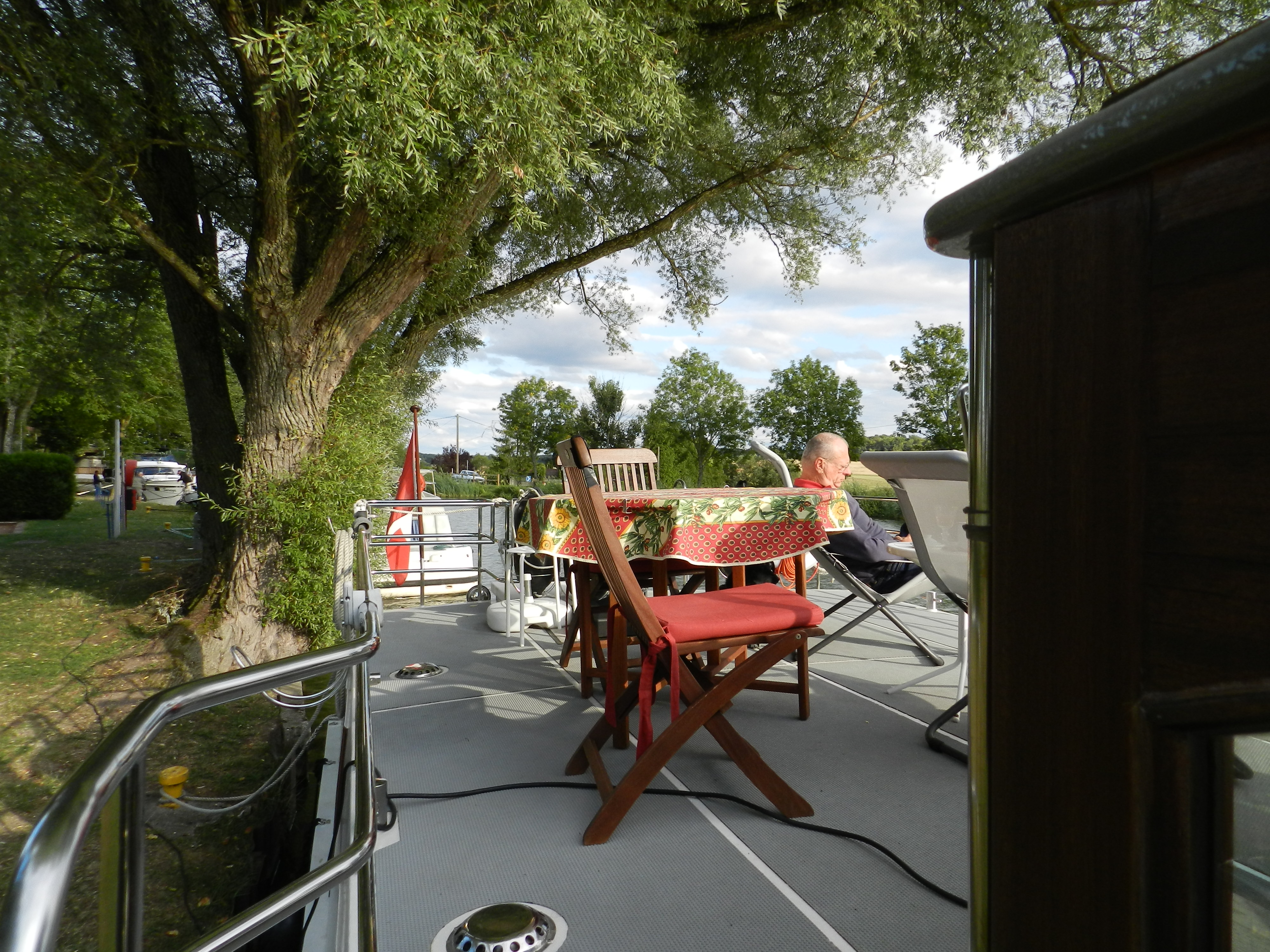 Mittagspause in Pagny am Anleger bei der Schleuse. Das Wetter dreht langsam auf Regen. Wir kommen grad noch trocken nach Pont à Mousson.