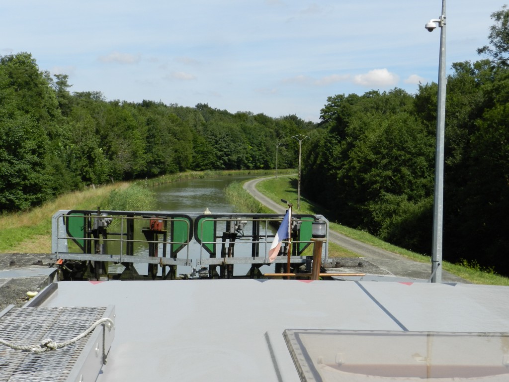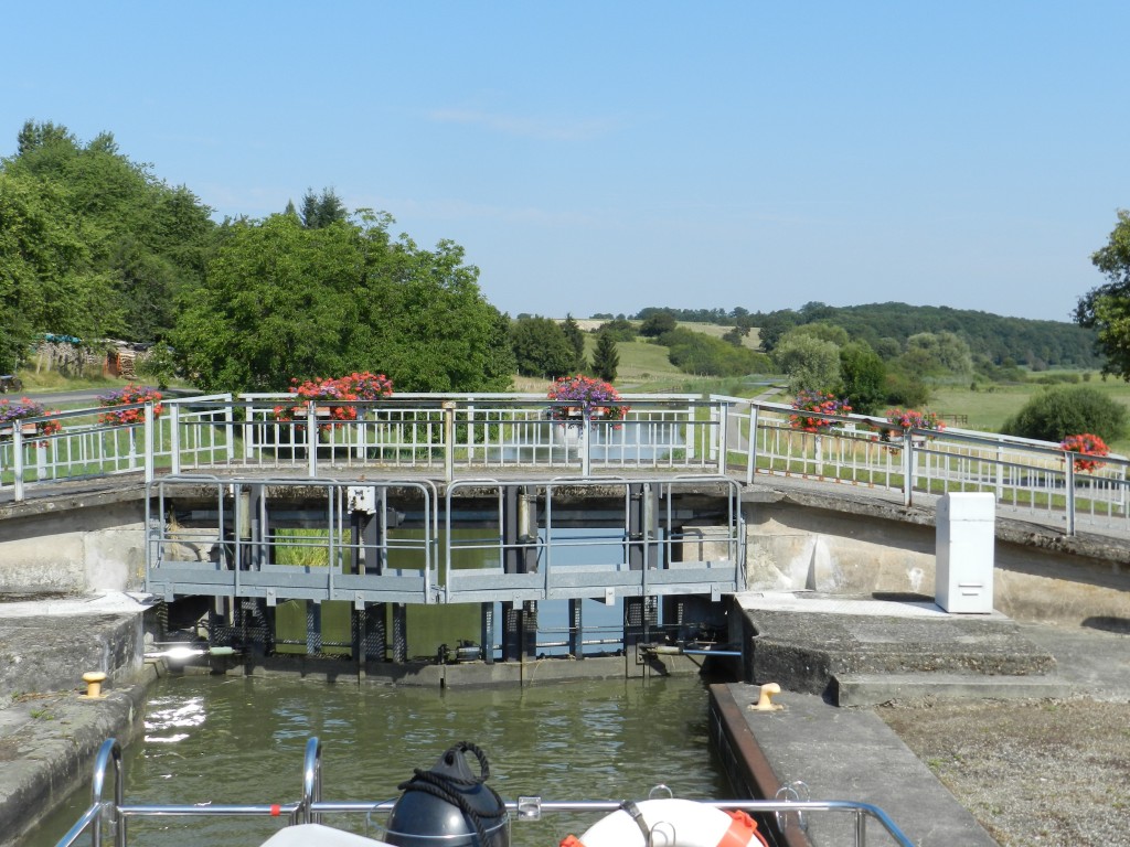 Weiterfahrt am Sonntag bei meist trockenem Wetter über Blénod und Custines – beide Schleusen sind für uns allein bereit und in Betrieb – zurück nach Frouard und in den Canal de la Marne au Rhin.