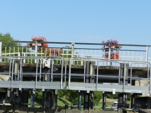 Zwischen Harskirchen und Sarreguemines haben sich Dörfer, Schleusen und Brücken ganz offensichtlich besonders herausgeputzt: Blumen, Blumen, Blumen – überall prächtig gepflegte Blumenarrangements!