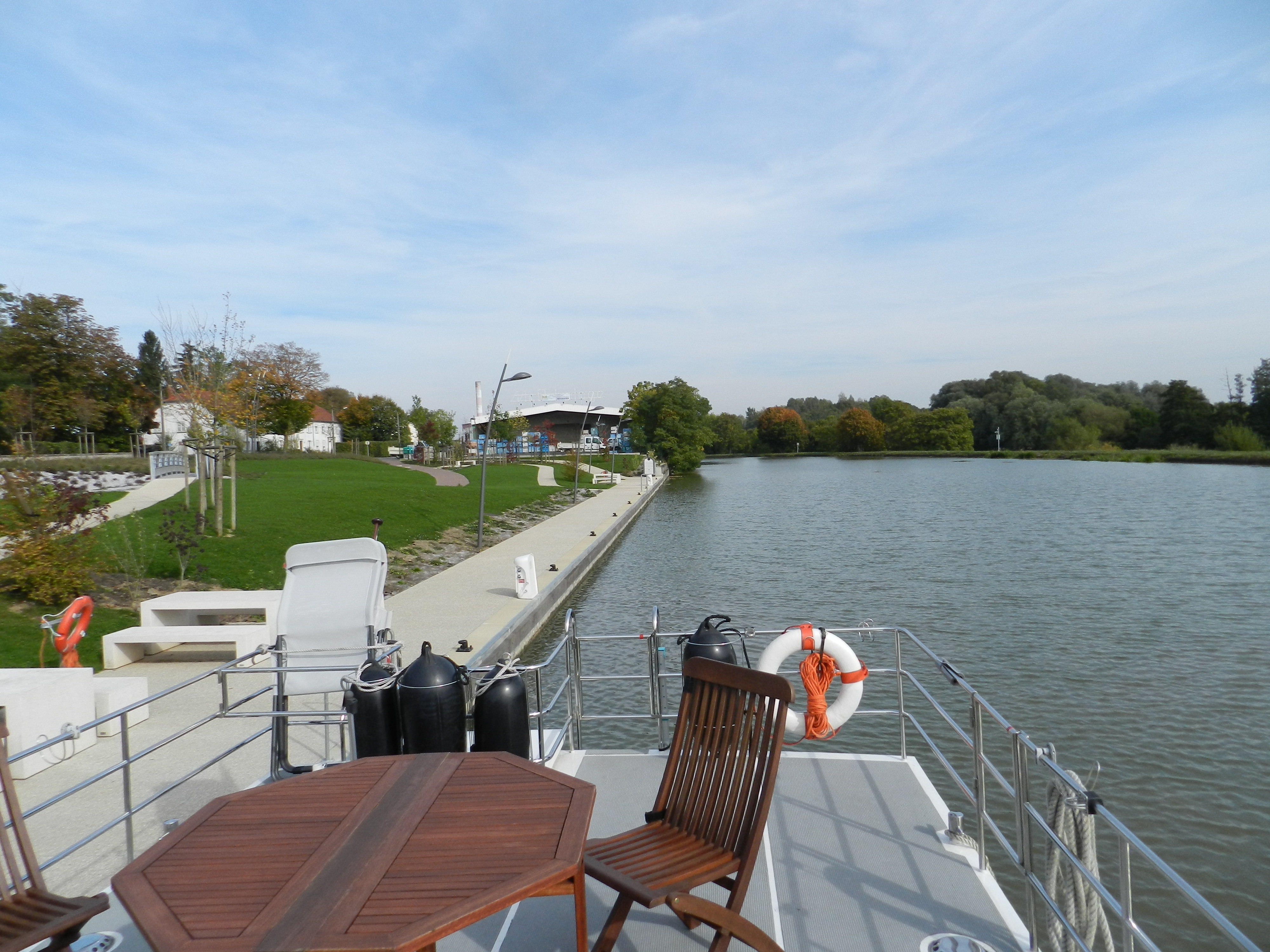 Am Sonntag geht’s weiter über Harskirchen – der Hafen wird mittlerweile von Nicols als Charterbasis genutzt und ist entsprechend belegt – nach Sarralbe und dort an den Anleger bei der Parkanlage ein paar Kilometer vor der Stadtschleuse – wie gewohnt.