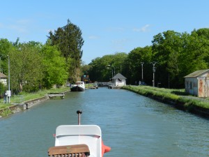 Also: „eigentlich“ dürften immer nur mehrere Schiffe gleichzeitig die Schleusen benutzen („faut grouper les bâteaux devant les écluses“), meint er. Aber es hat zur Zeit ja fast keine Schiffe auf dem Kanal, und zudem – es hat ja keine éclusiers mehr, die das arrangieren könnten – gefolgt vom schon seit Jahren üblichen Klagelied über den Personalabbau bei den VNF…