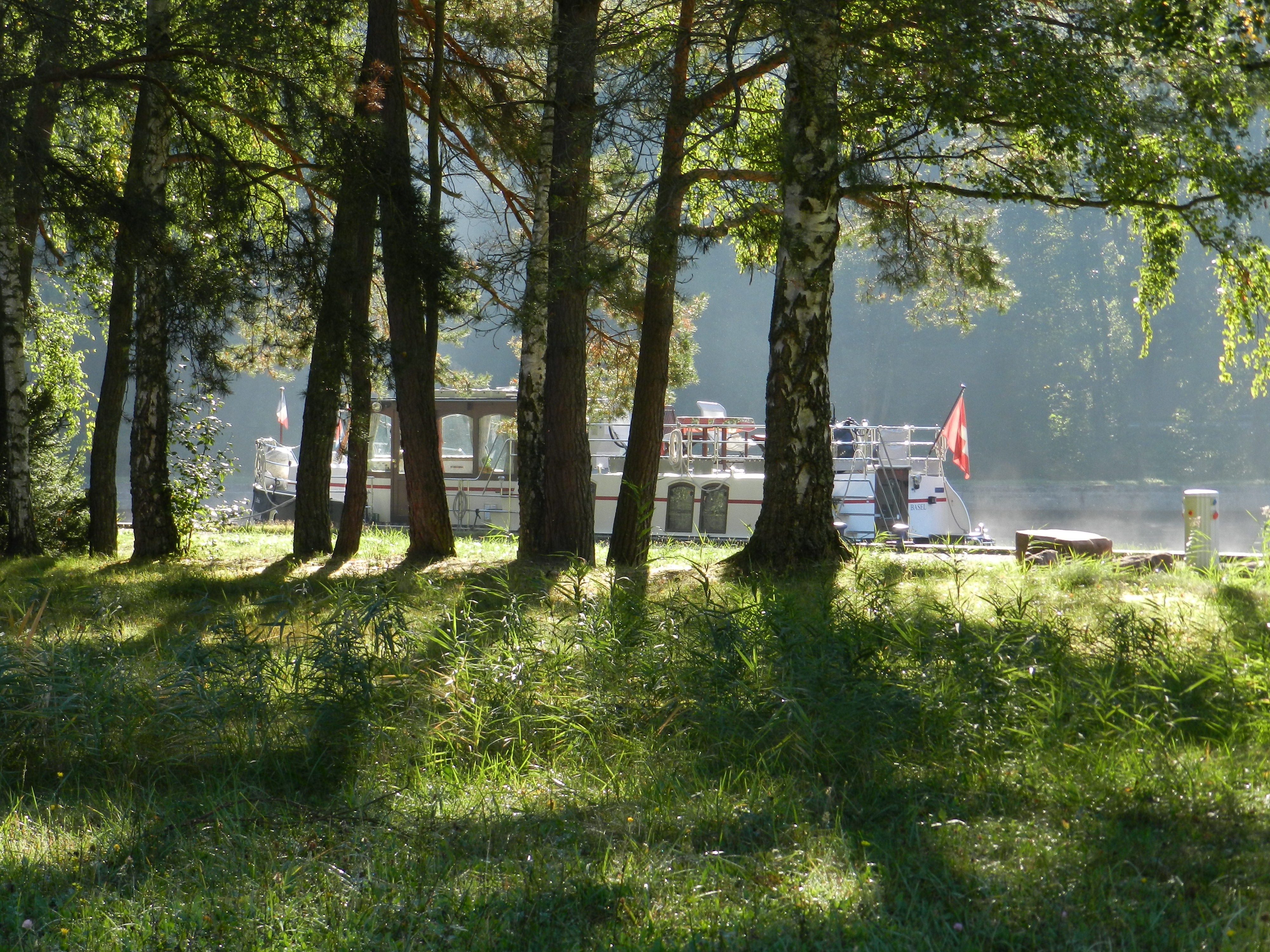 Unsere Weiterfahrt führt am 28. Juli wieder zurück nach Parroy – wir müssen vor dem 1. August noch etwas Zeit strecken und halten den Anleger im Grünen und unter dem Schatten mehrerer Bäume als bestens geeignet für eine zweitägige Fahrpause. Zudem ist Lagarde über’s Wochenende erfahrungsgemäss mit wechselnden Chartercrews überfüllt.
