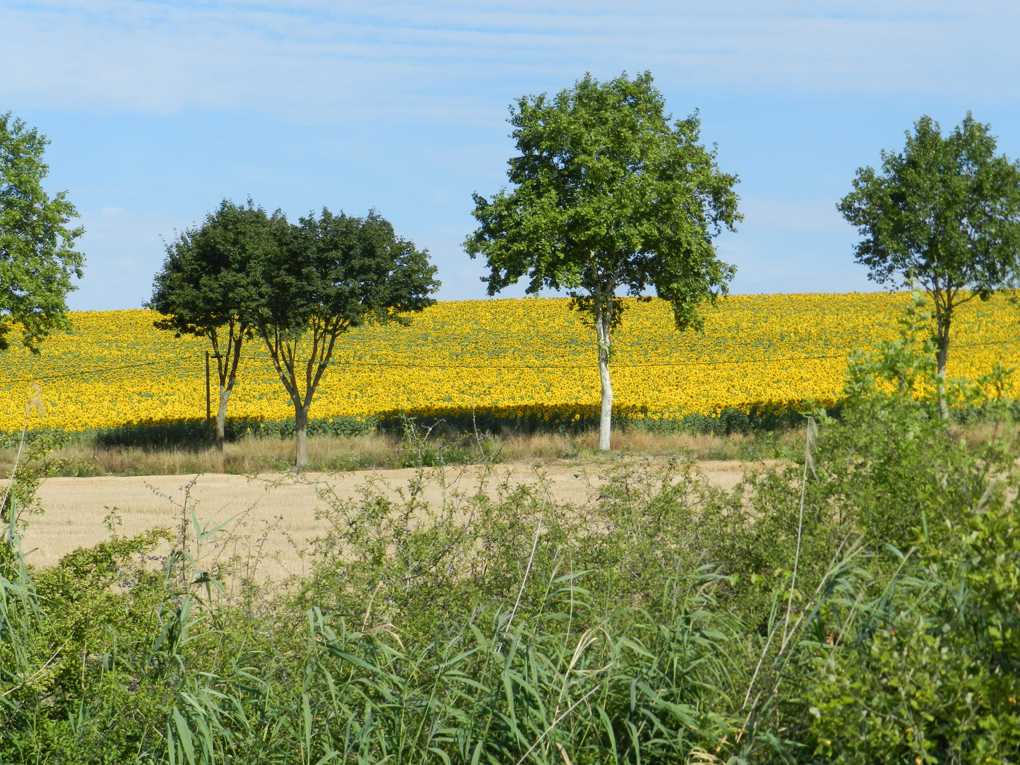 …bis Parroy und gehen dort am Mittag unter einem schattenspendenden Baum in die Mittags-, Nachmittags- und Abendpause.