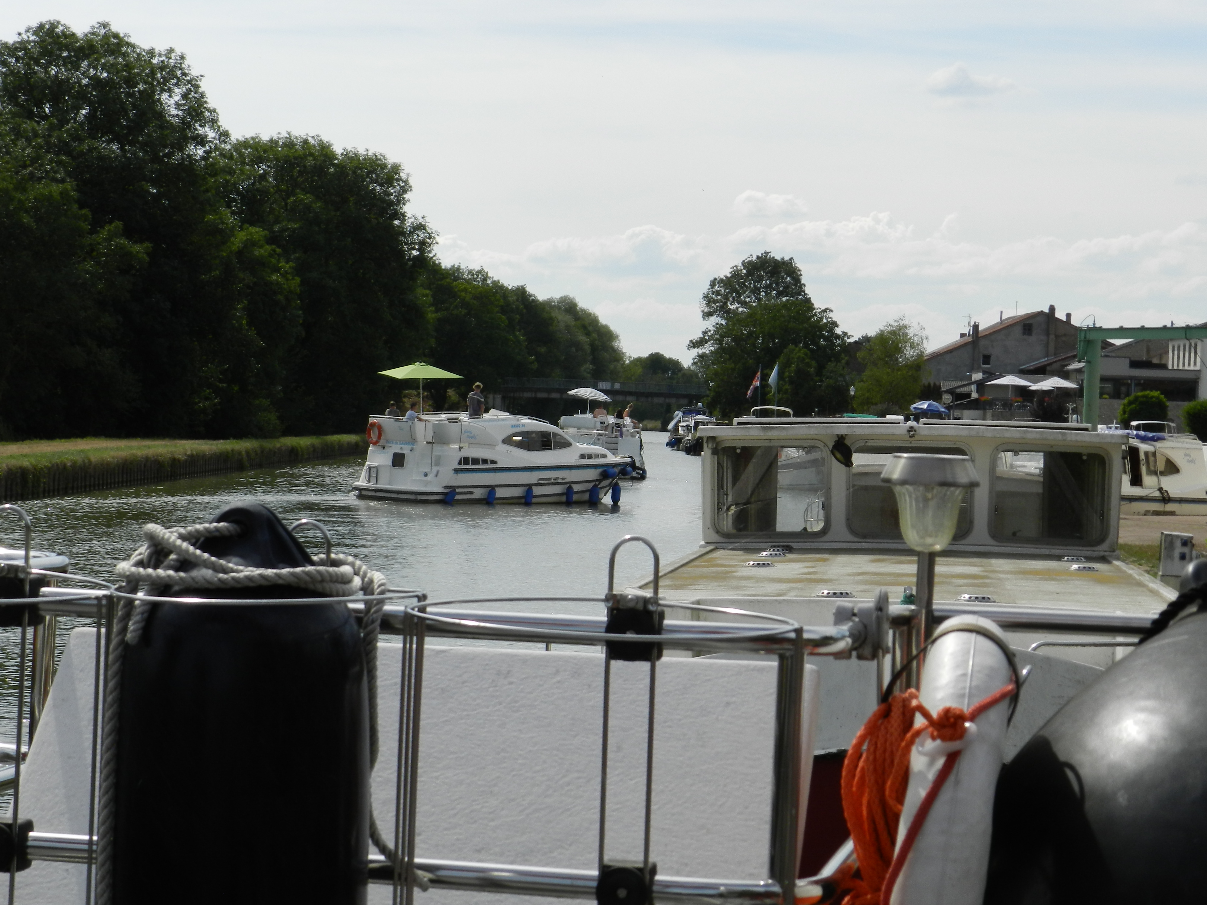 Unterwegs kreuzen wir in einem der Mini-Kanalabschnitte zwischen zwei Schleusen eine Vetus aus Lagarde und merken erst viel zu spät, dass die Zürcher „Hausbootfrauen“ damit unterwegs sind – es bleibt deshalb beim überraschten Winken.