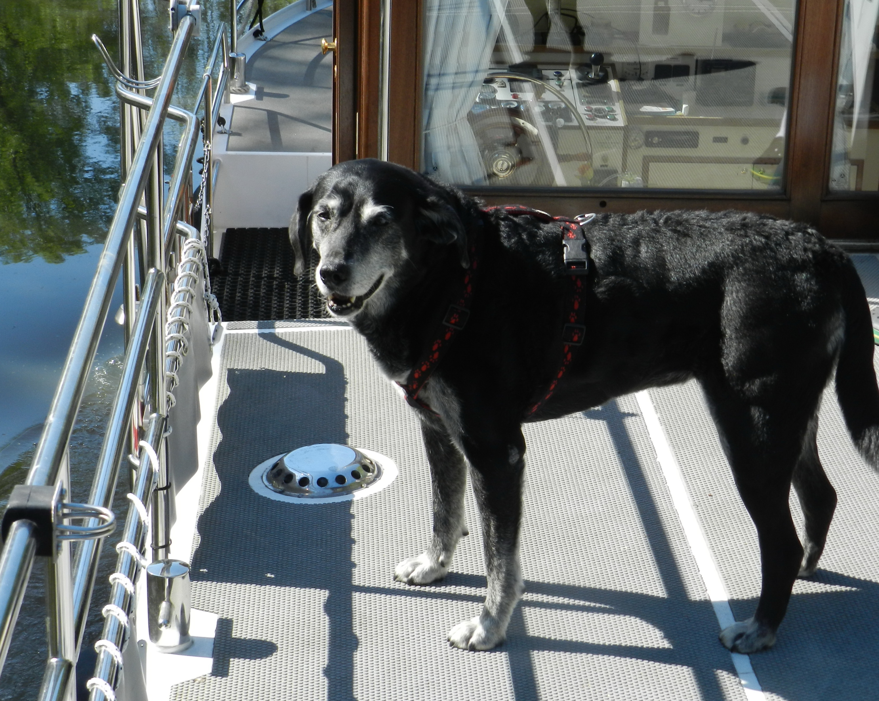 Die dritte Fahrt dieses Jahres wird nämlich zu einem reinen Erholungsprogramm für rücken- und gelenkgeschädigte Passagiere (gilt auch für den Bordhund!) – also wenig fahren, kaum Schleusen, viele ruhige Tage an wenig genutzten Anlegern mit viel Sonne, viel Liegestuhl, leichten Spaziergängen und Lektüre im Grünen… (und natürlich Rosé zur Anaesthesie!).