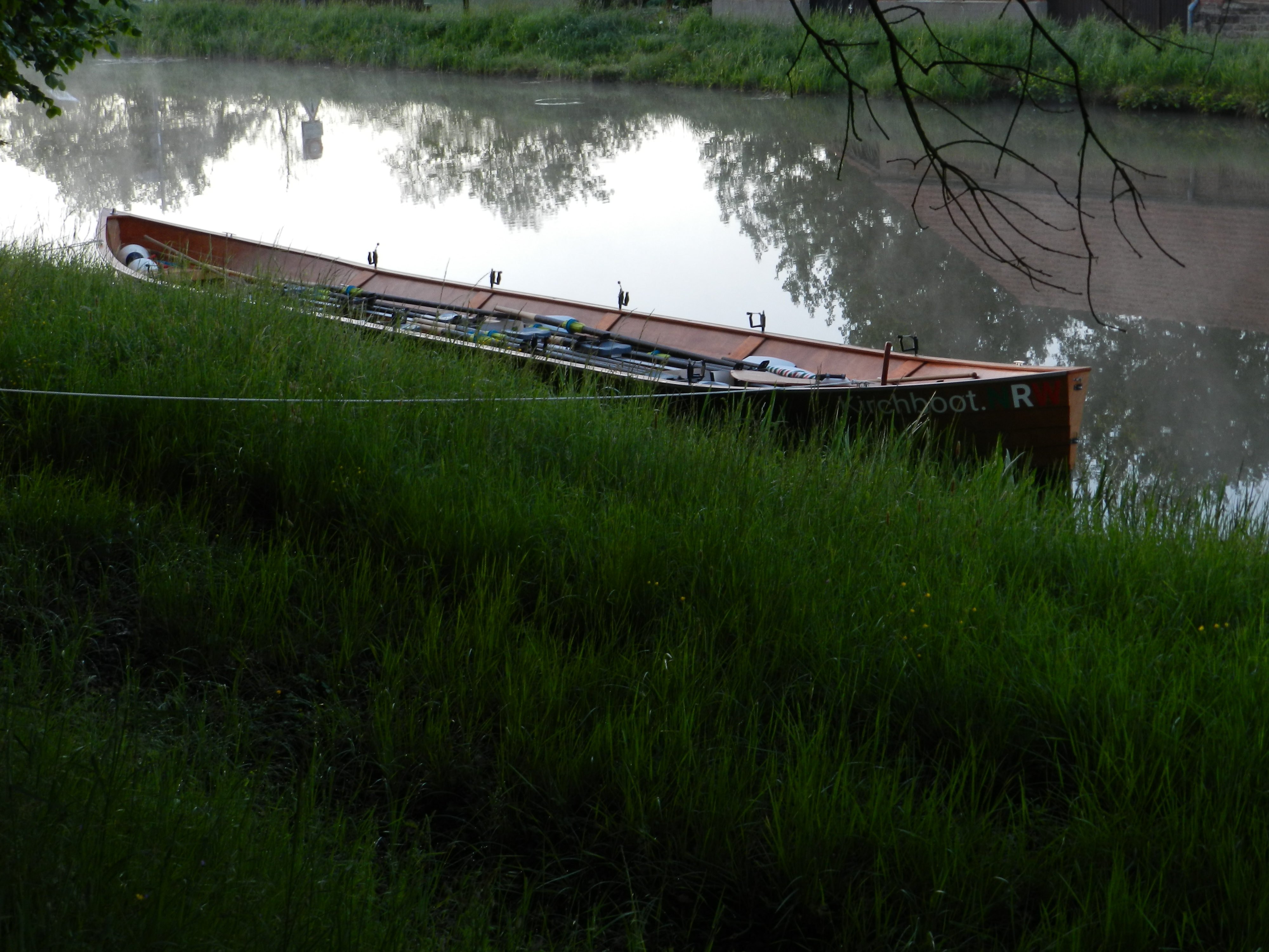 Später trifft auch noch ein Ruderboot aus Deutschland auf Festtagsfahrt ein, passiert die Schleuse und legt in der Nähe an für die Nachtpause.