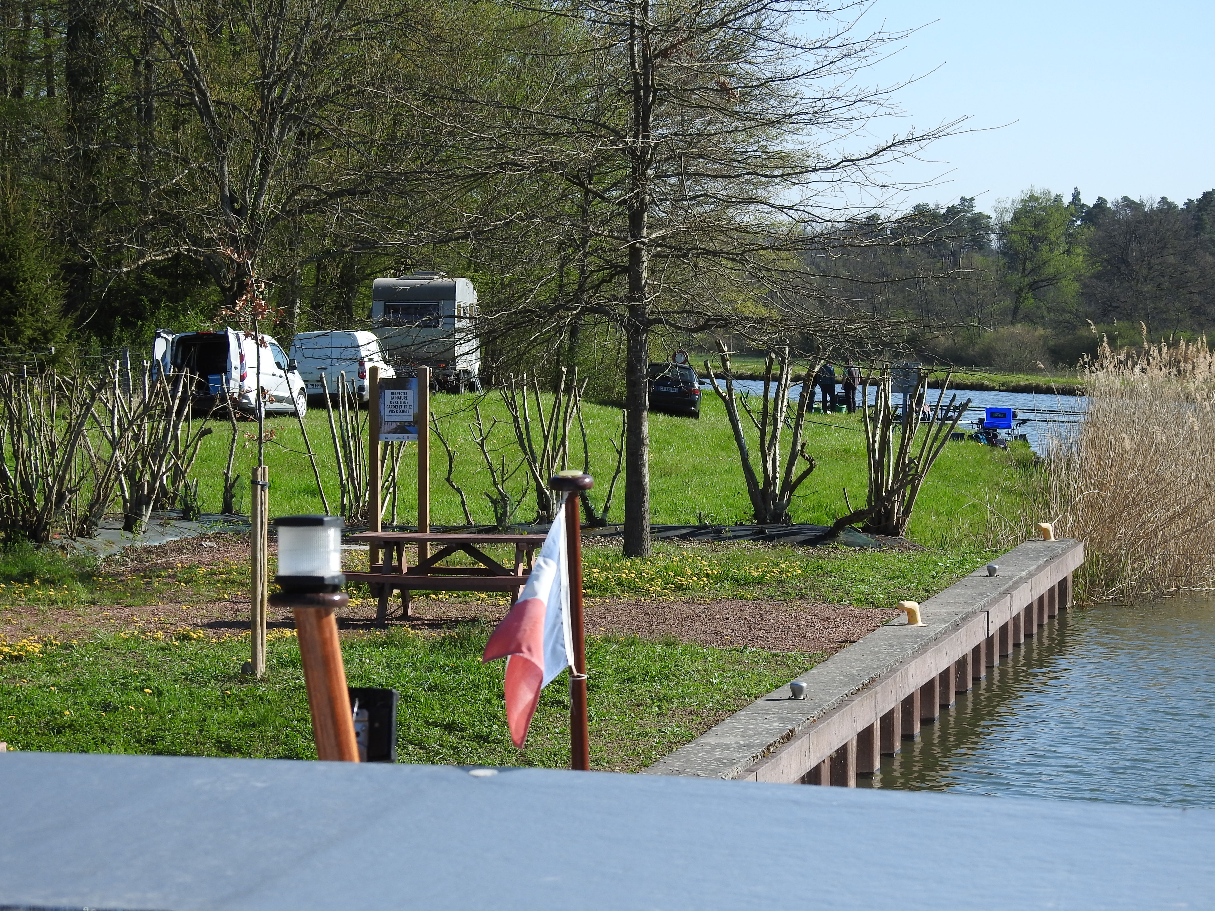 Das lässt sich perfekt bewerkstelligen, und bis zur Mittagspause sind wir zurück am (leeren) Steg von Xouaxange.
